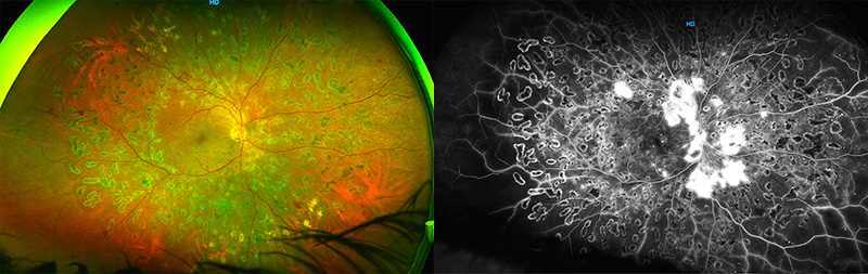 - Fotocoagulación con láser: Se fotocoagula las zonas de filtrado y ayuda al retraso de la progresión de la neovascularización retinal.